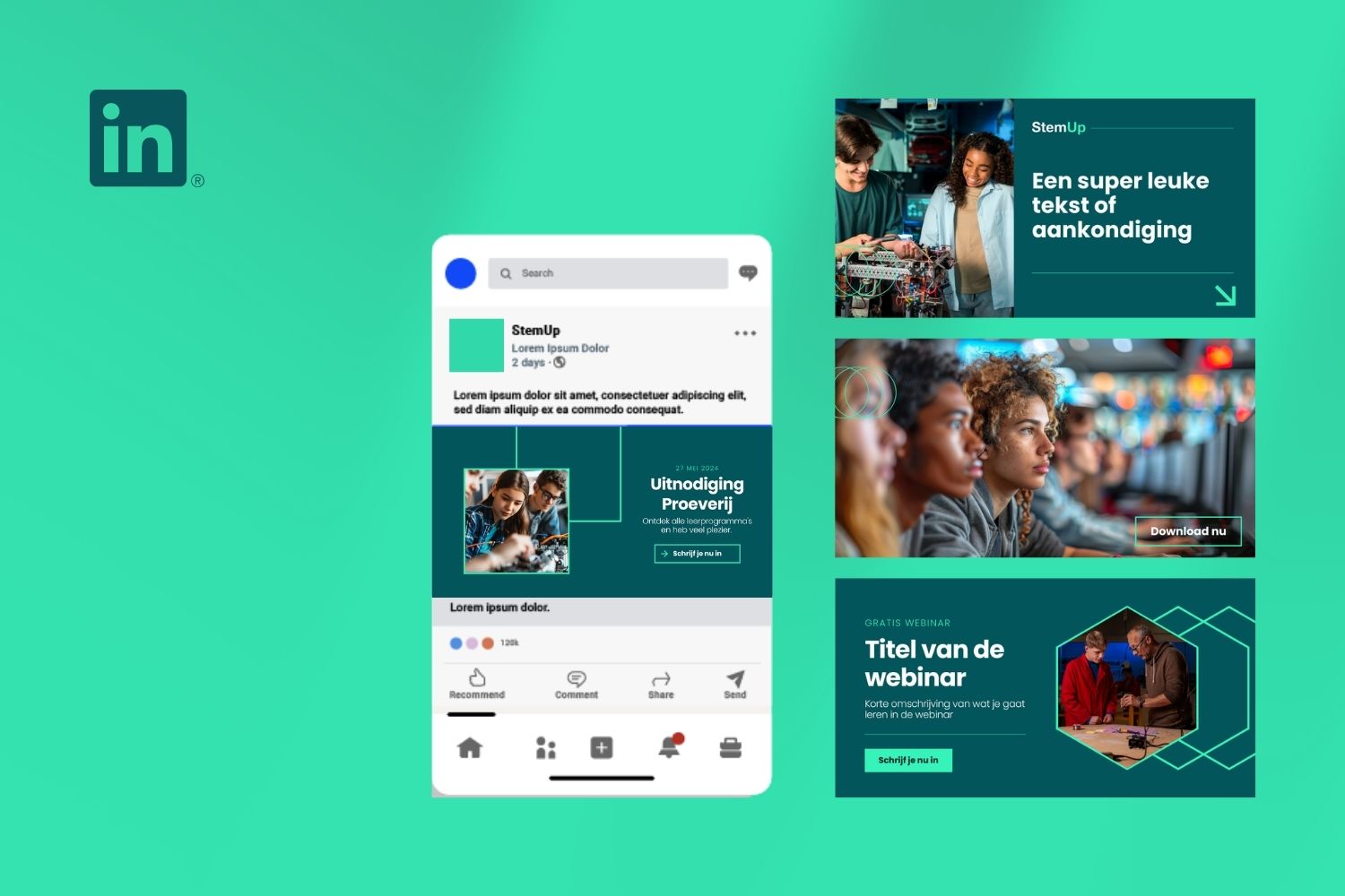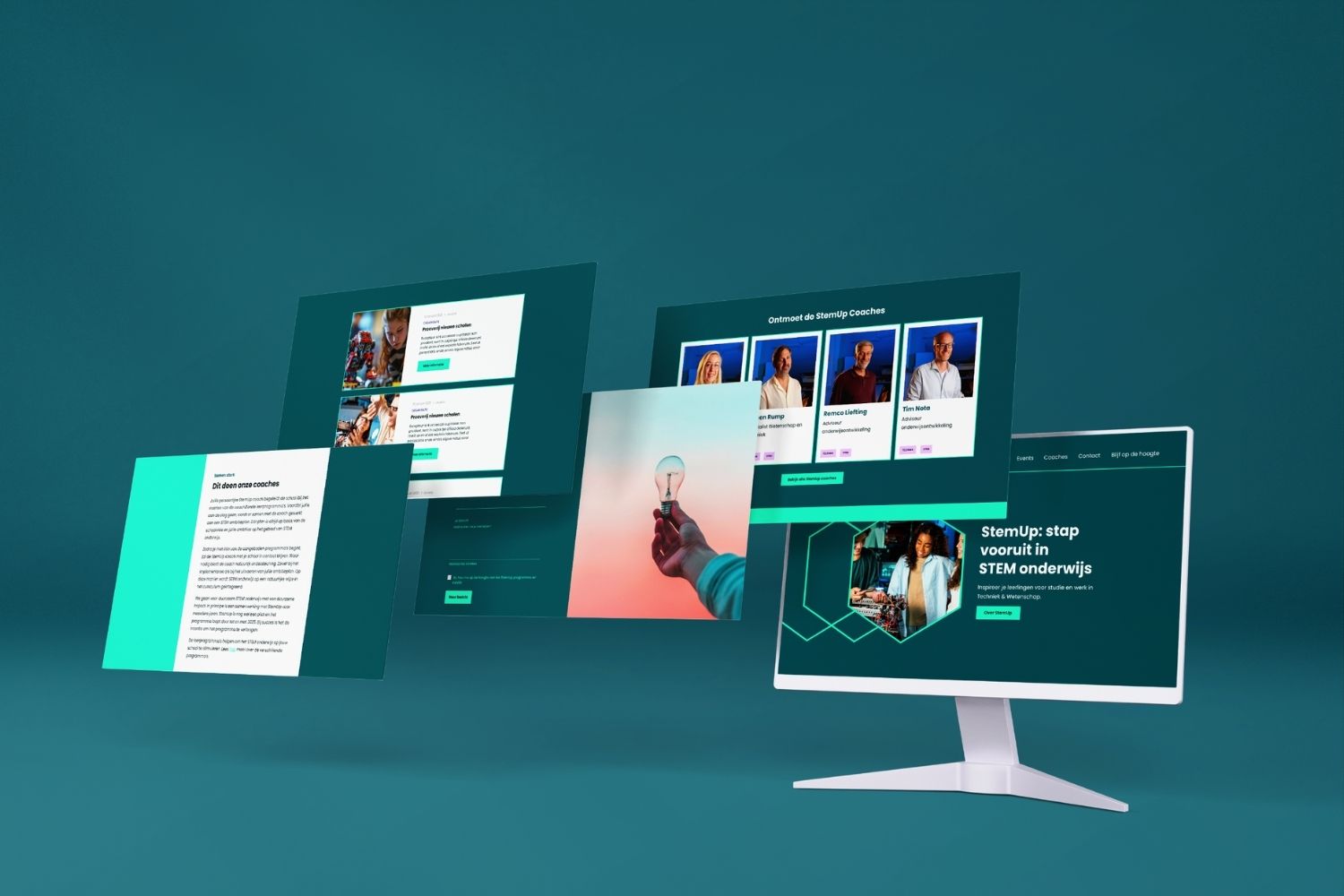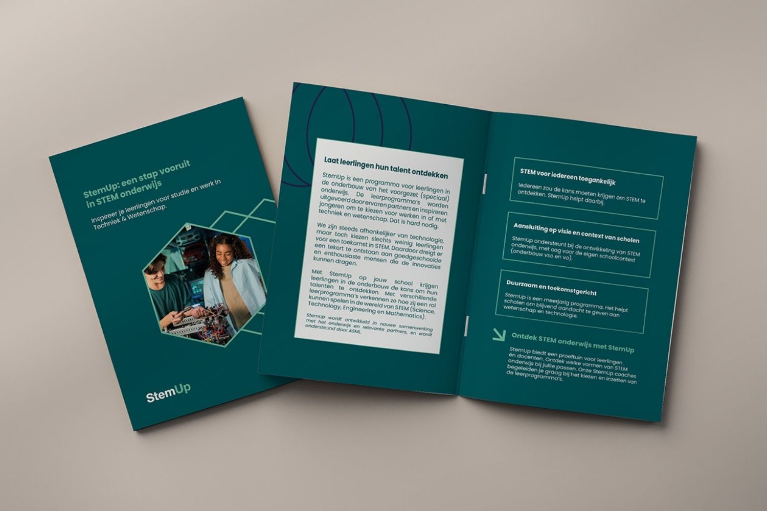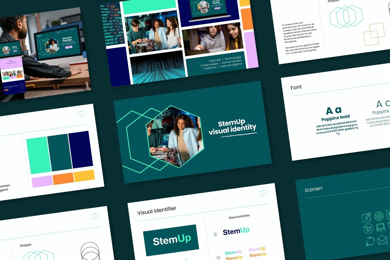 StemUp is een leer‑ en ontdekprogramma dat jongeren stimuleert om voor techniek en wetenschap te kiezen. Ik ontwierp een sterke visuele identiteit, een gebruiksvriendelijke website en bijpassende communicatiemiddelen, zodat de stijl overal consistent werd doorgevoerd.